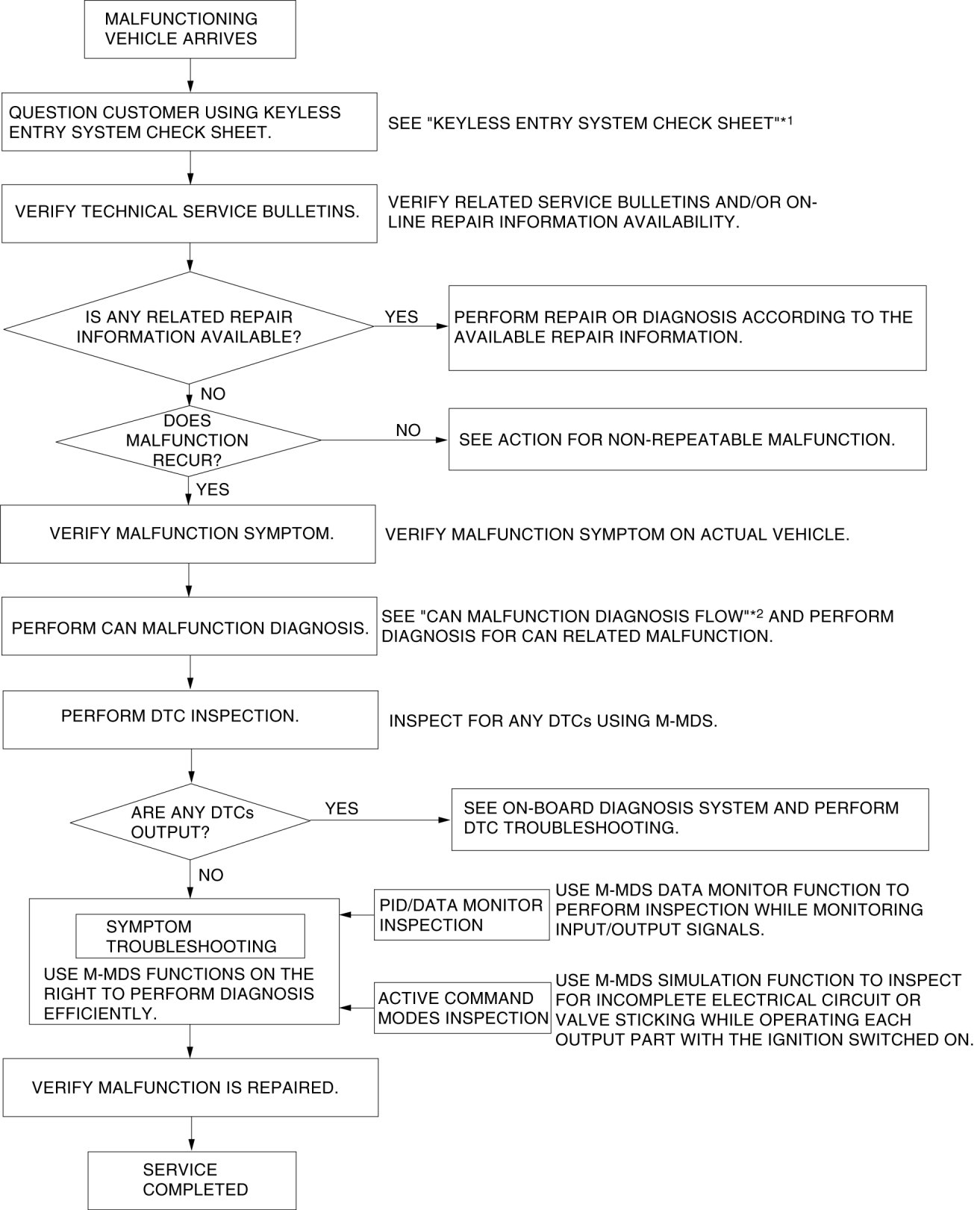 - If there is any vehicle malfunction complaint lodged by a customer, perform malfunction diagnosis according to the troubleshooting procedure.