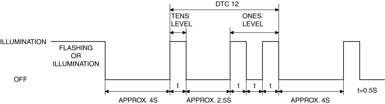 - A DTC is displayed ten times by switching the ignition ON once.