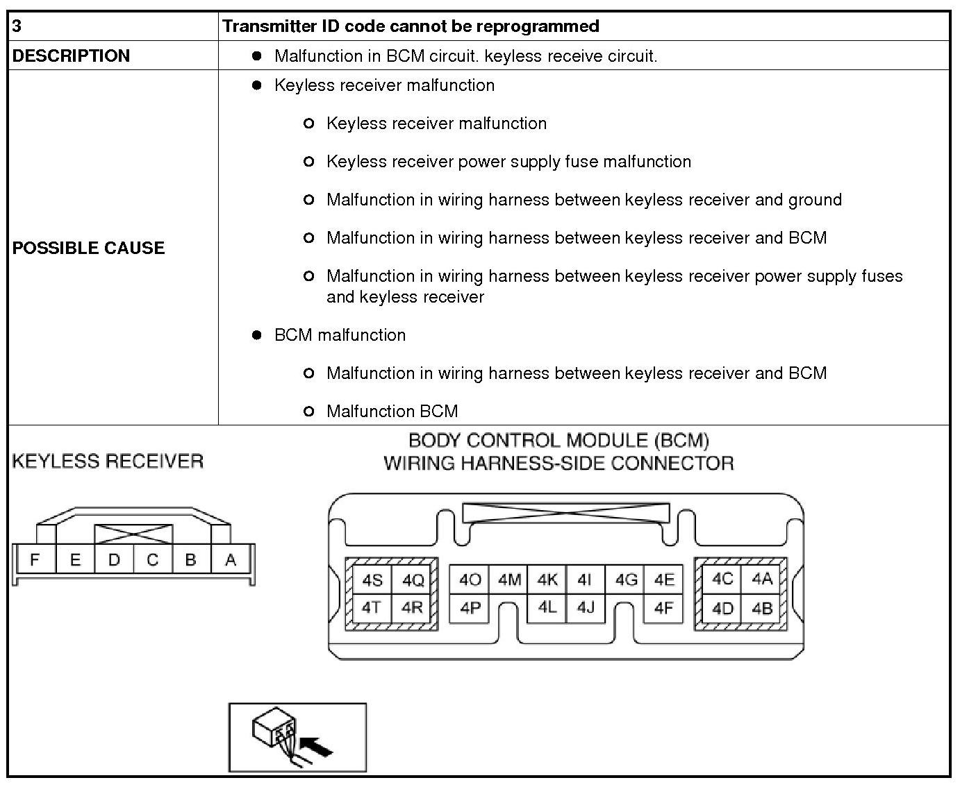 NO.3 TRANSMITTER ID CODE CANNOT BE REPROGRAMMED [KEYLESS ENTRY SYSTEM]