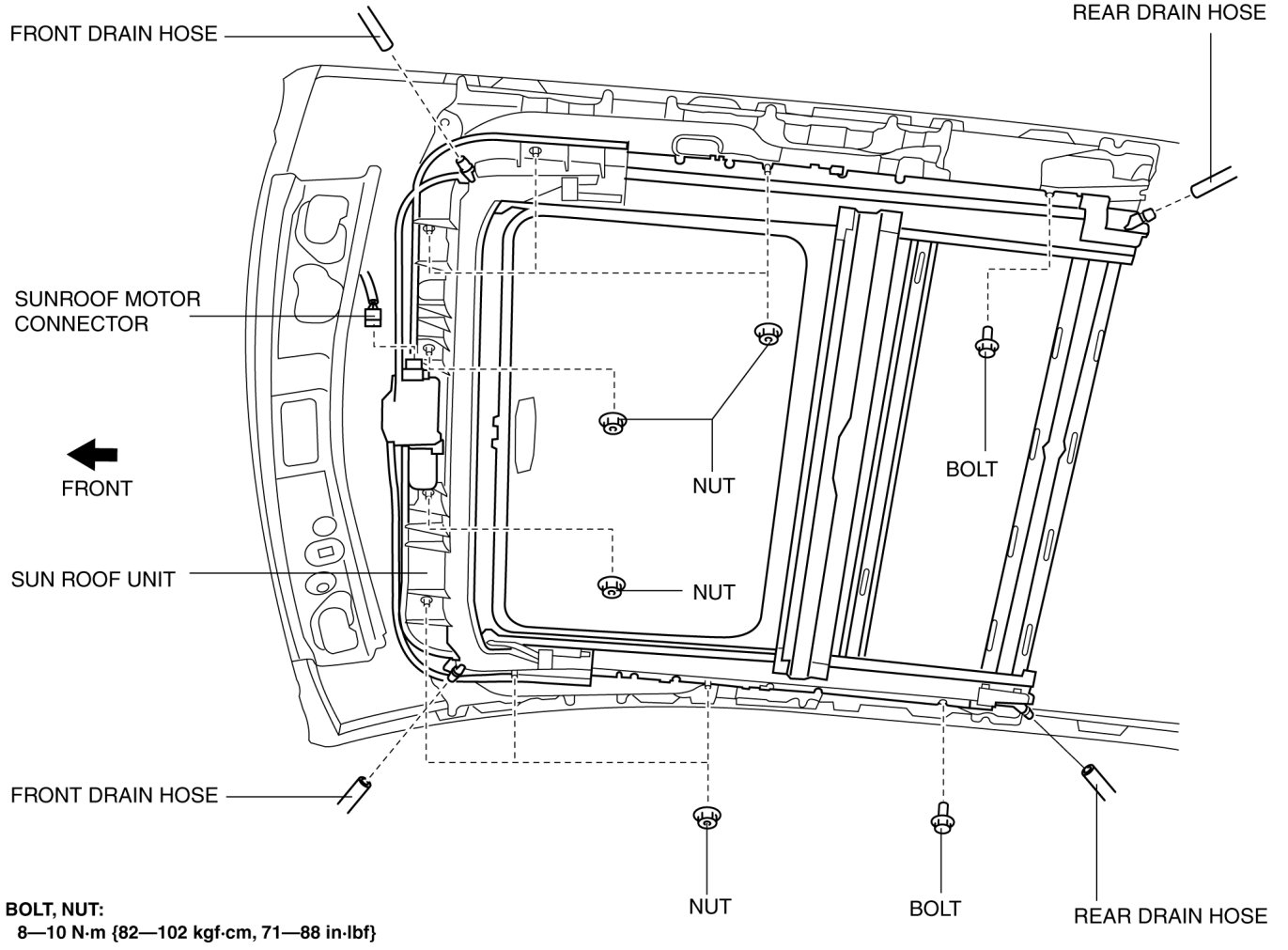 9. Remove the nuts, and then remove the sunroof unit.