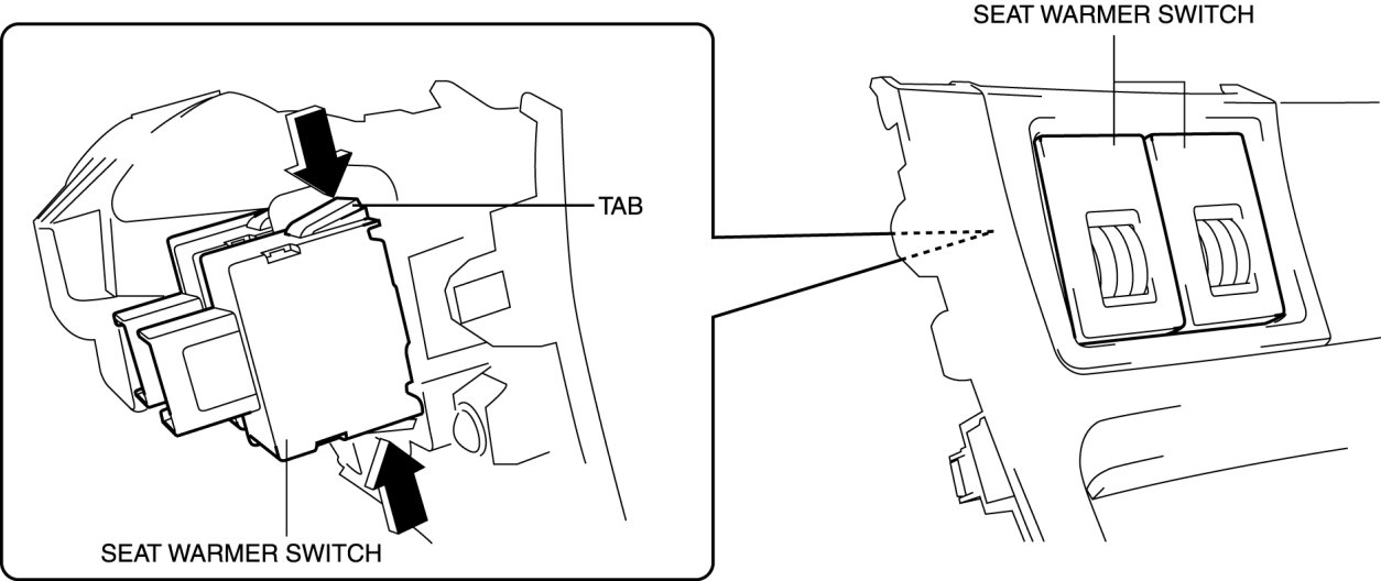 4. Squeeze the tabs of seat warmer switch and pull it outward to remove it.