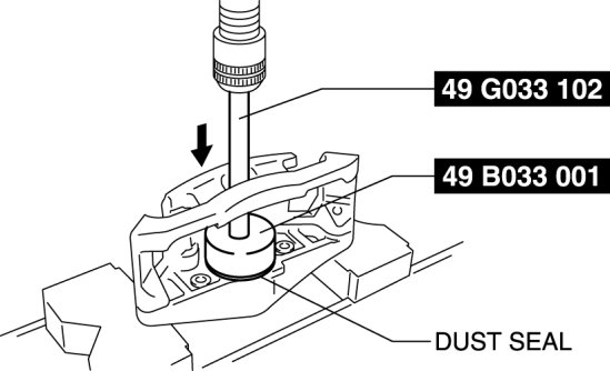 1. Assemble a new dust seal to the caliper using the SSTs and a press with a press-in force of 834 N {85 kgf, 187 in-lbf}.