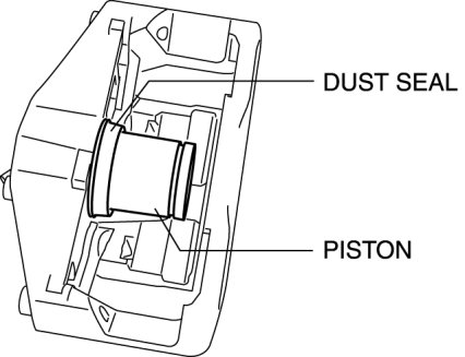 - When blowing compressed air into the caliper body, the piston may pop out and cause injury if not supported at the correct point. Securely support the piston friction surface by hand when blowing compressed air.