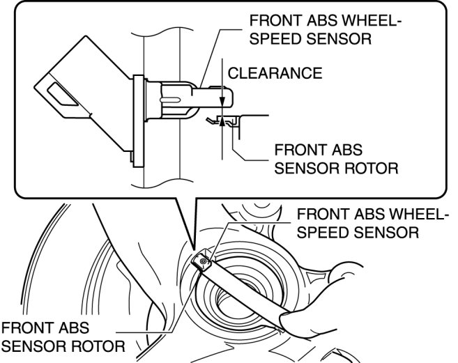 1. Measure the gap between the front ABS sensor rotor and the front ABS wheel-speed sensor using a feeler gauge.