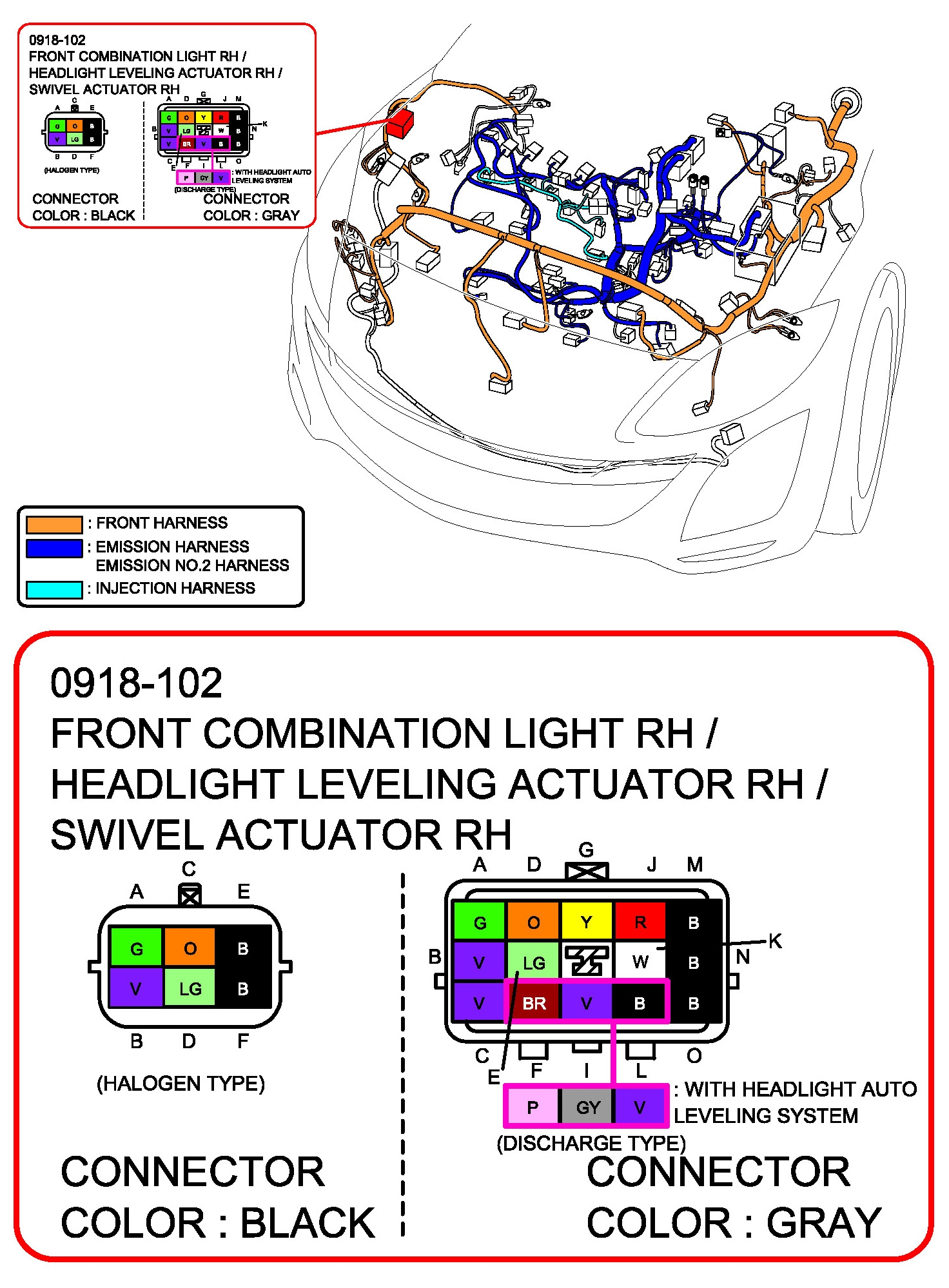 Front Combination Light RH/Headlight Leveling Actuator RH/Swivel Actuator RH