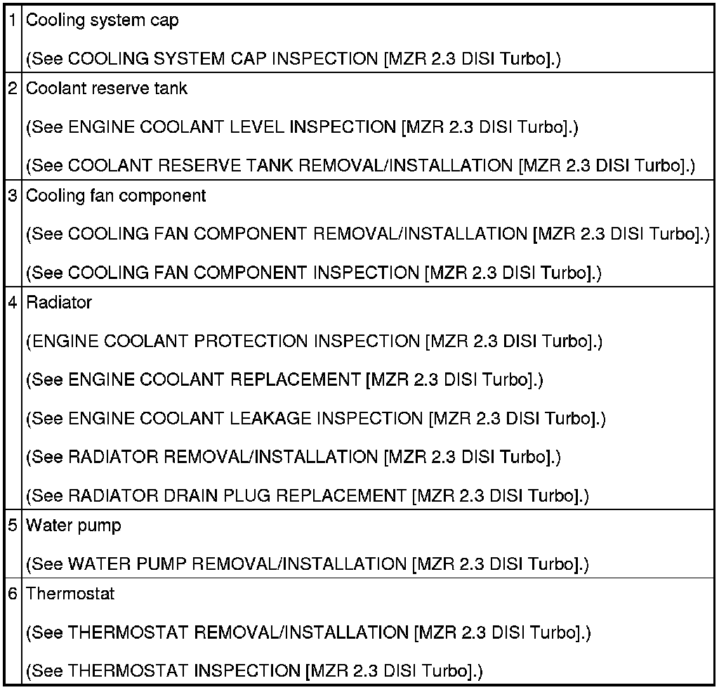 COOLING SYSTEM LOCATION INDEX [MZR 2.3 DISI Turbo]