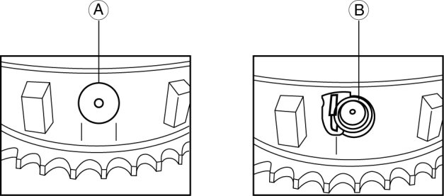 7. Inspect the variable valve timing actuator for damage around the stopper pin cap (A), or a missing stopper pin cap (B), spring and stopper.