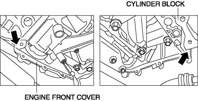 1 Do not allow the gasket residue to enter the oil pan. Using cleaning fluid, completely remove the oil from the joint. Especially be sure to completely remove oil and gasket residue from the corner section of the engine front cover and the cylinder block.