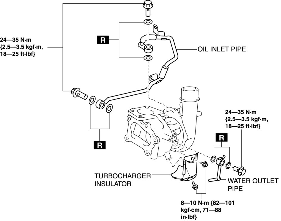 - If the turbocharger is removed at the same time, drain the engine coolant and remove the throttle body.