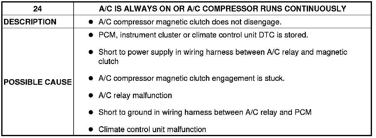 No. 24 A/C Is Always ON Or A/C Compressor Runs Continuously