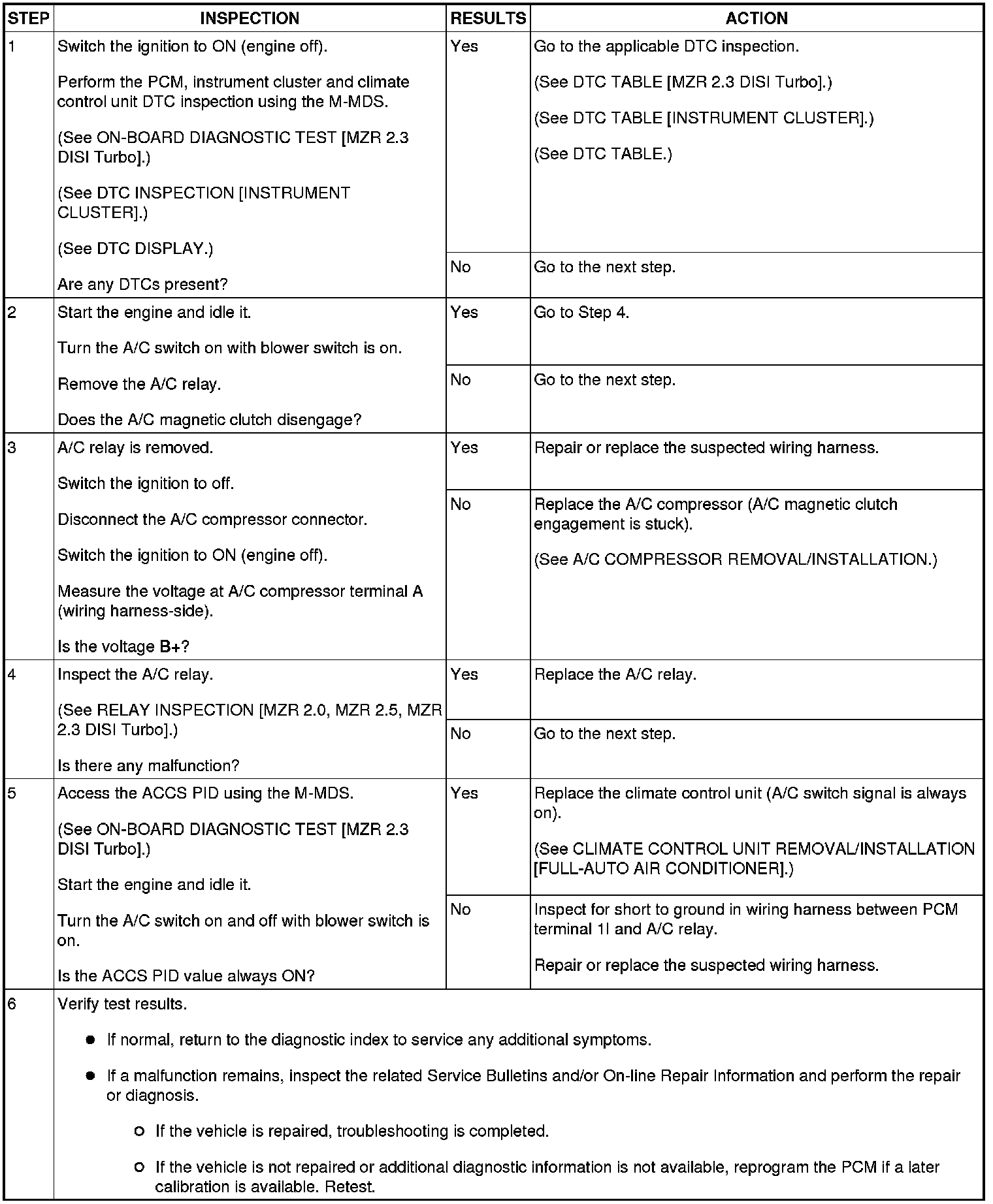 NO.24 A/C IS ALWAYS ON OR A/C COMPRESSOR RUNS CONTINUOUSLY [MZR 2.3 DISI Turbo]