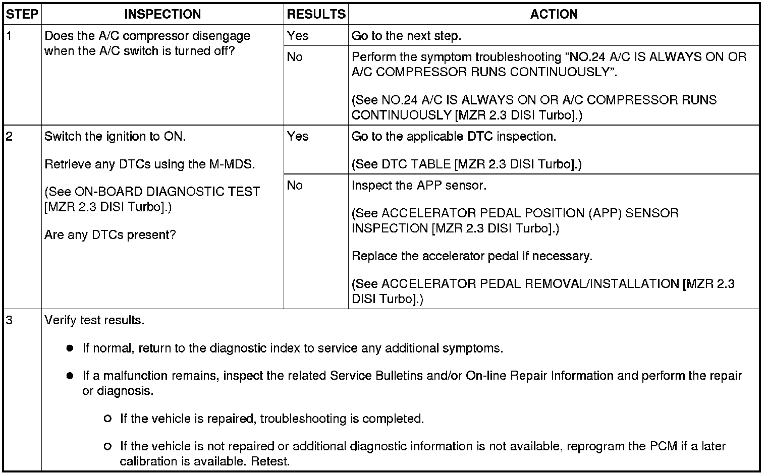NO.25 A/C IS NOT CUT OFF UNDER WIDE OPEN THROTTLE CONDITIONS [MZR 2.3 DISI Turbo]