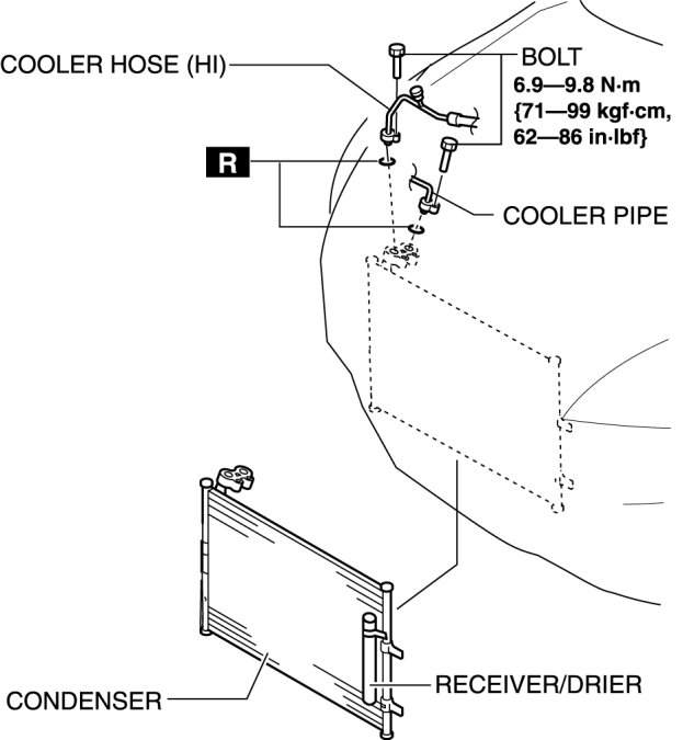 MZR 2.0, MZR 2.5, SKYACTIV-G 2.0 (4SD), SKYACTIV-G 2.0 (5HB, vehicles with receiver/drier on vehicle right)