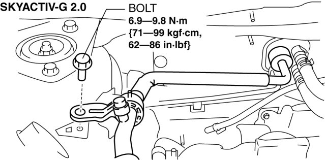 8. Remove the bolt. (SKYACTIV-G 2.0, MZR 2.5, MZR 2.3 DISI Turbo)