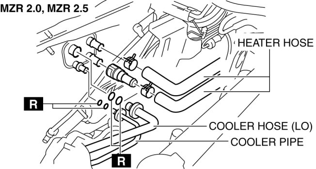 c. Heater hose (See Heater Hose Removal Note.) (See Heater Hose Installation Note.)