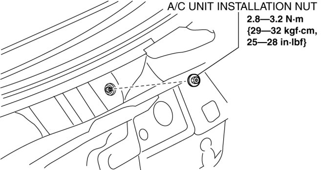 12. Remove the A/C unit installation nut from the engine compartment, then remove the A/C unit.