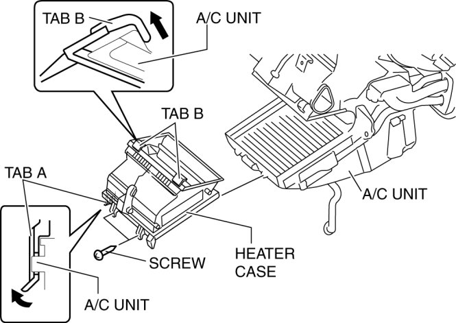 - Pull up tabs B in the direction shown by the arrow in the figure and remove it from the A/C unit.