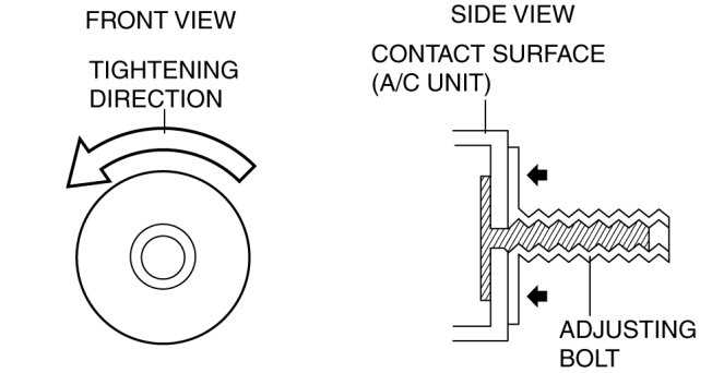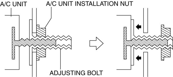 2. Tighten the A/C unit adjusting bolt until it lightly touches the A/C unit.