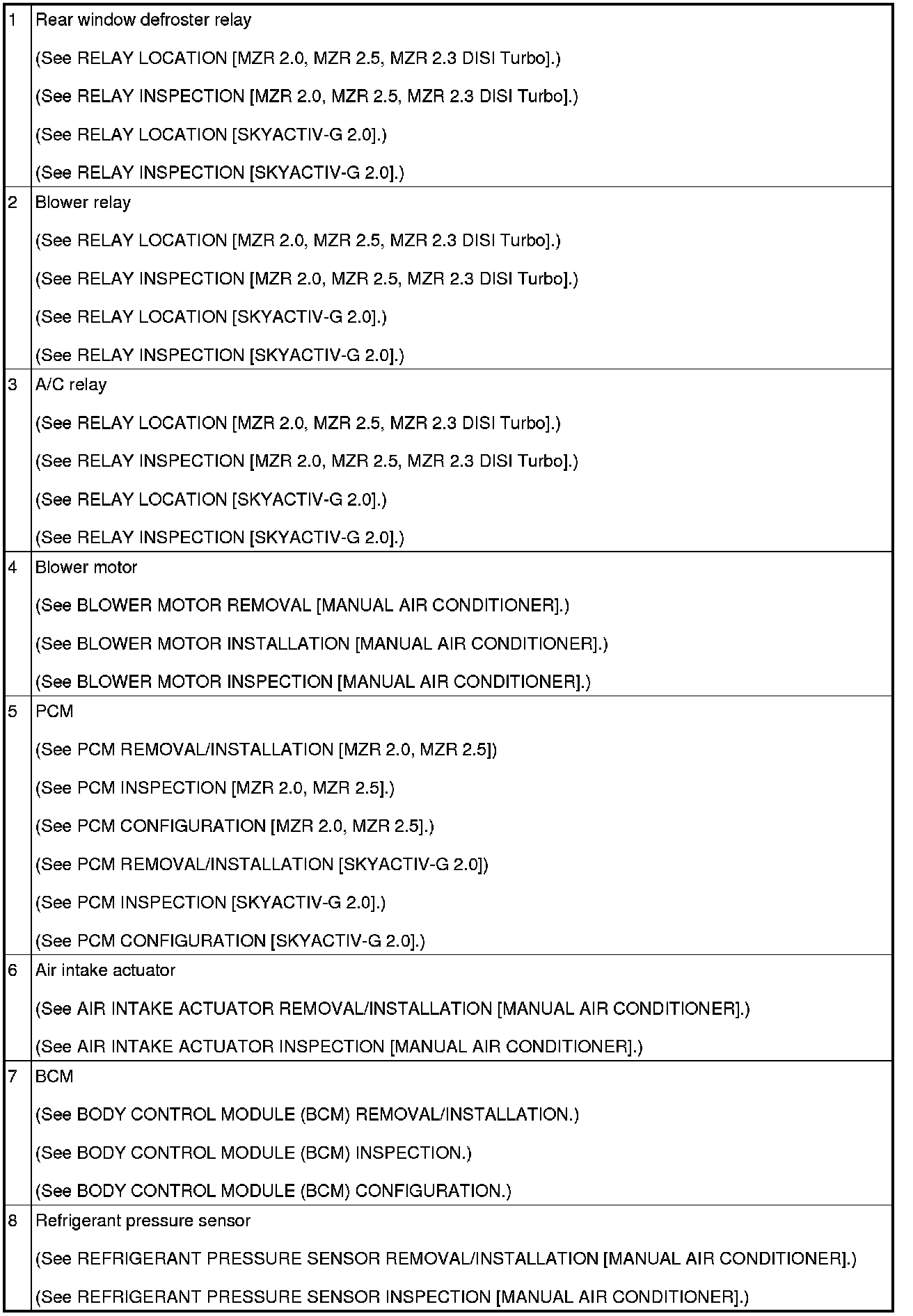 HVAC CONTROL SYSTEM LOCATION INDEX [MANUAL AIR CONDITIONER]