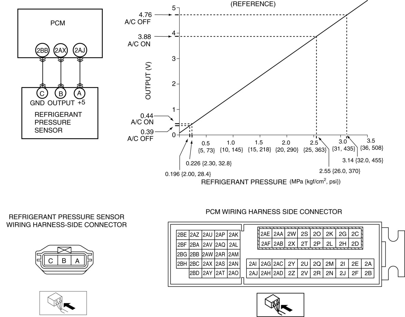 - Terminal 2AJ: Approx. 5 V (Ignition switch on)