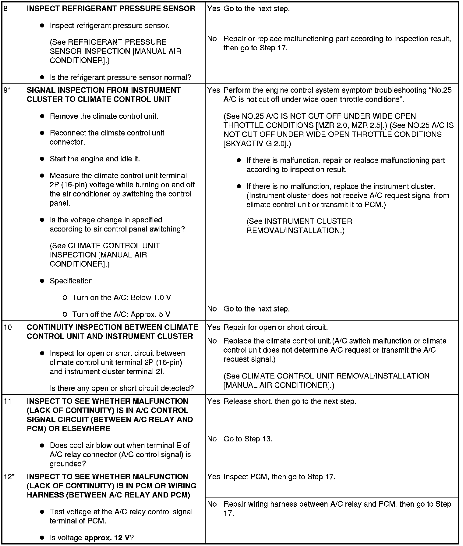- When performing an asterisked (*) troubleshooting inspection, shake the wiring harness and connectors while performing the inspection to discover whether poor contact points are the cause of any intermittent malfunctions. If there is a problem, check to make sure connectors, terminals and wiring harnesses are connected correctly and undamaged.
