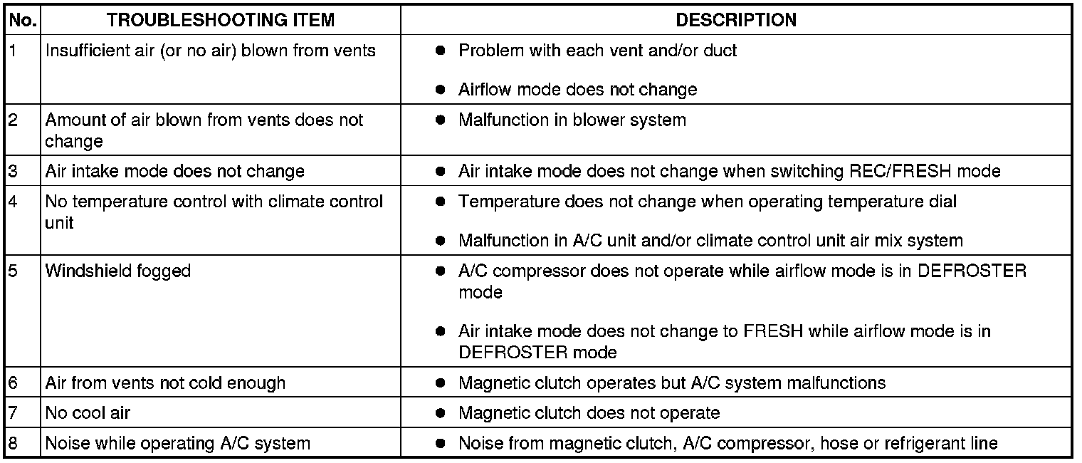TROUBLESHOOTING INDEX [MANUAL AIR CONDITIONER]