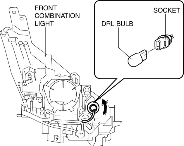 3. Rotate the DRL bulb in the direction of the arrow shown in the figure to remove it.