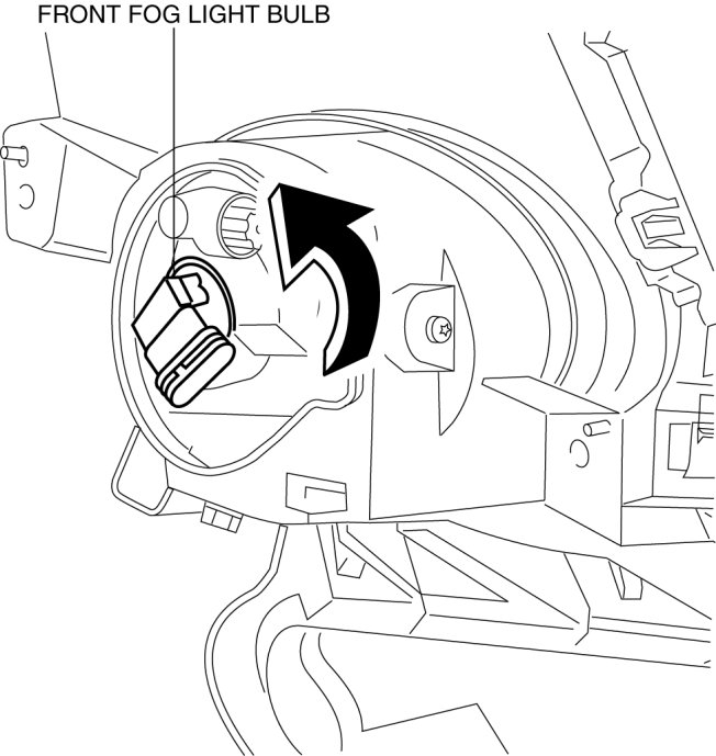 4. Rotate the front fog light bulb in the direction of the arrow shown in the figure.