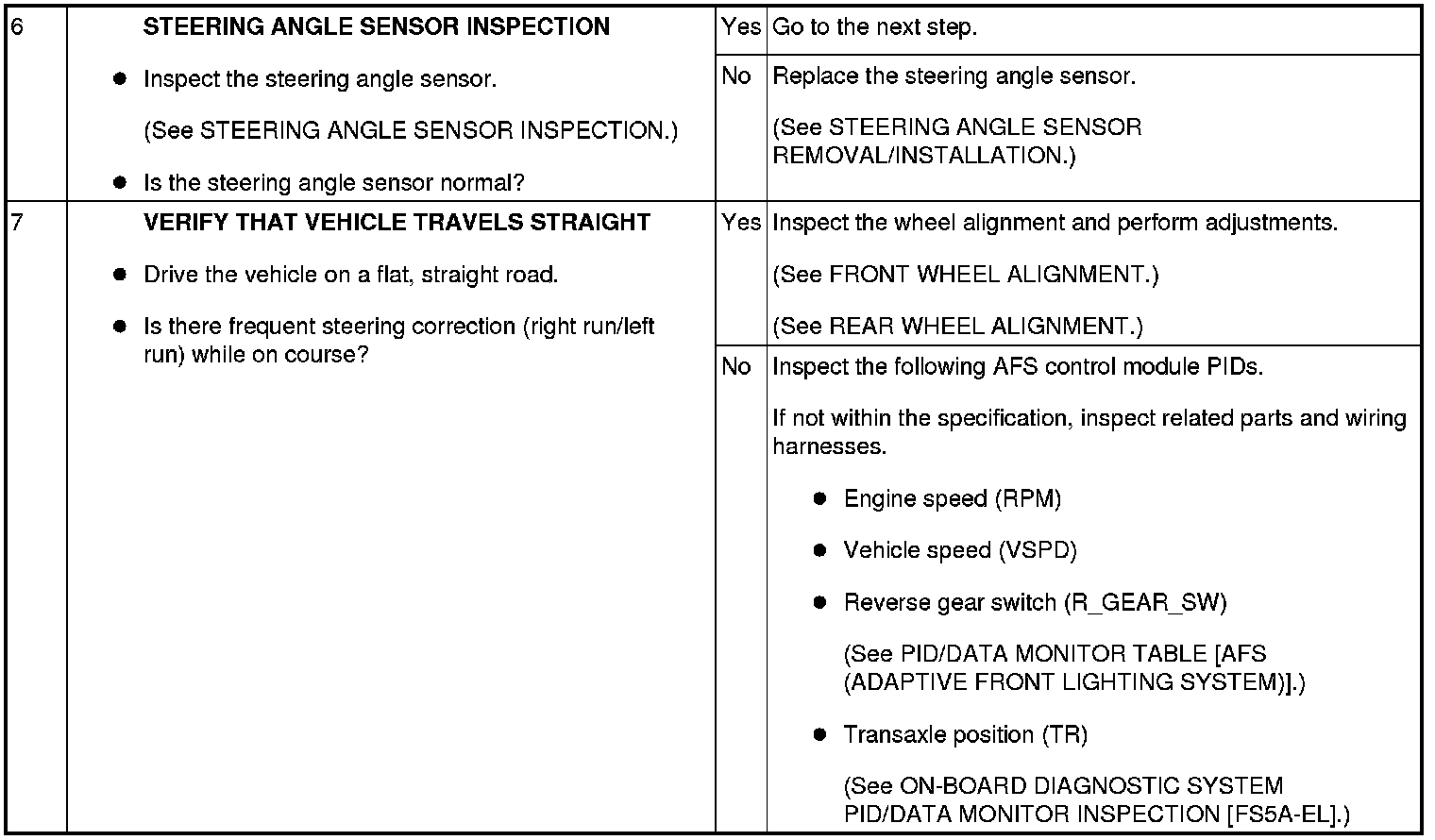 No.2 AFS (ADAPTIVE FRONT LIGHTING SYSTEM) DOES NOT OPERATE IN THE LEFT AND RIGHT DIRECTIONS [AFS (ADAPTIVE FRONT LIGHTING SYSTEM)]