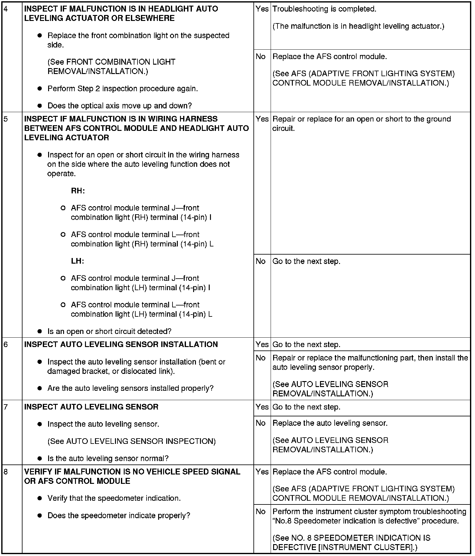 No.5 AUTO LEVELING DOES NOT ADJUST OPTICAL AXIS OF THE HEADLIGHTS FOR VEHICLE POSTURE [AFS (ADAPTIVE FRONT LIGHTING SYSTEM)]