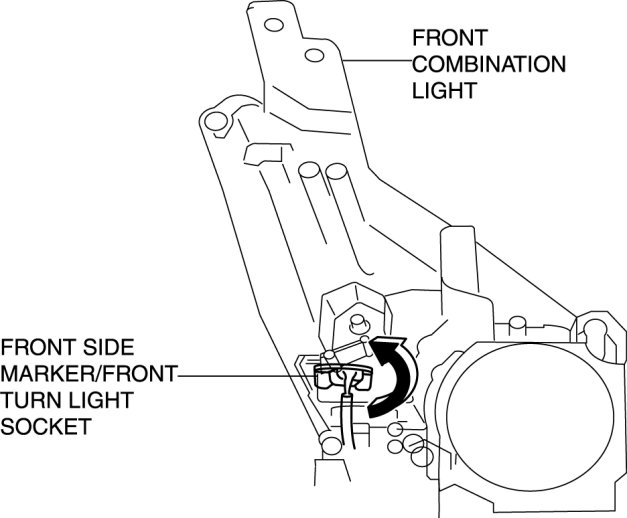 3. Rotate the front side marker/front turn light socket in the direction of the arrow shown in the figure.