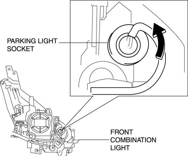 2. Rotate the parking light socket in the direction of the arrow shown in the figure to remove it.