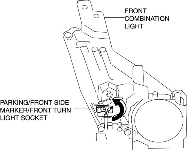 3. Rotate the parking/front side marker/front turn light socket in the direction of the arrow shown in the figure.