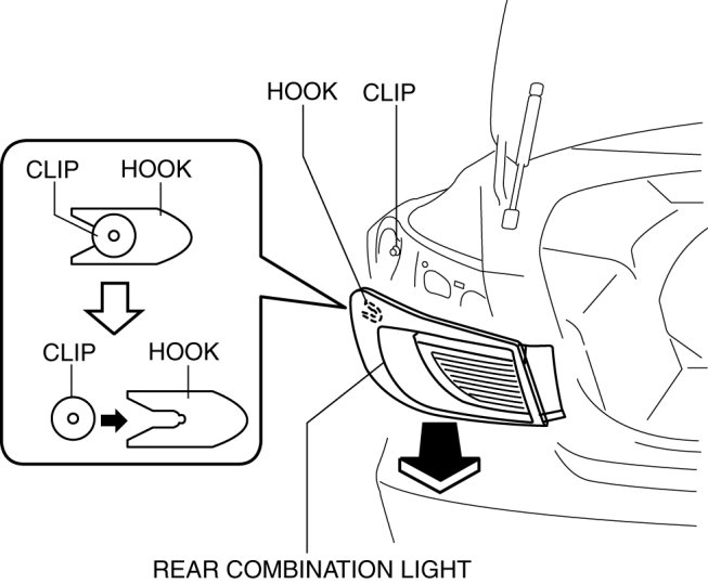 4. Pull the rear combination light in the direction of the arrow to detach it from the hook.