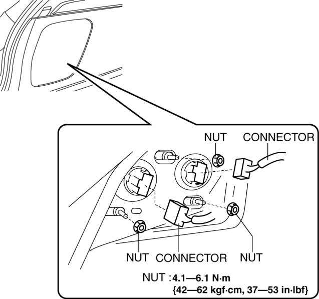 3. Disconnect the connectors shown in the figure and remove the nuts.