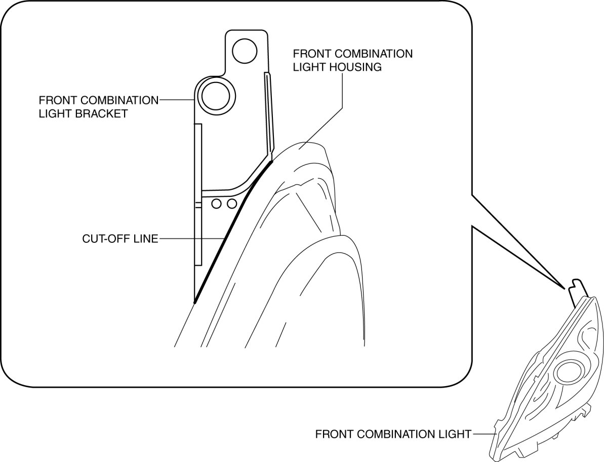 1. Cut off the front combination light bracket at the locations shown in the figure.