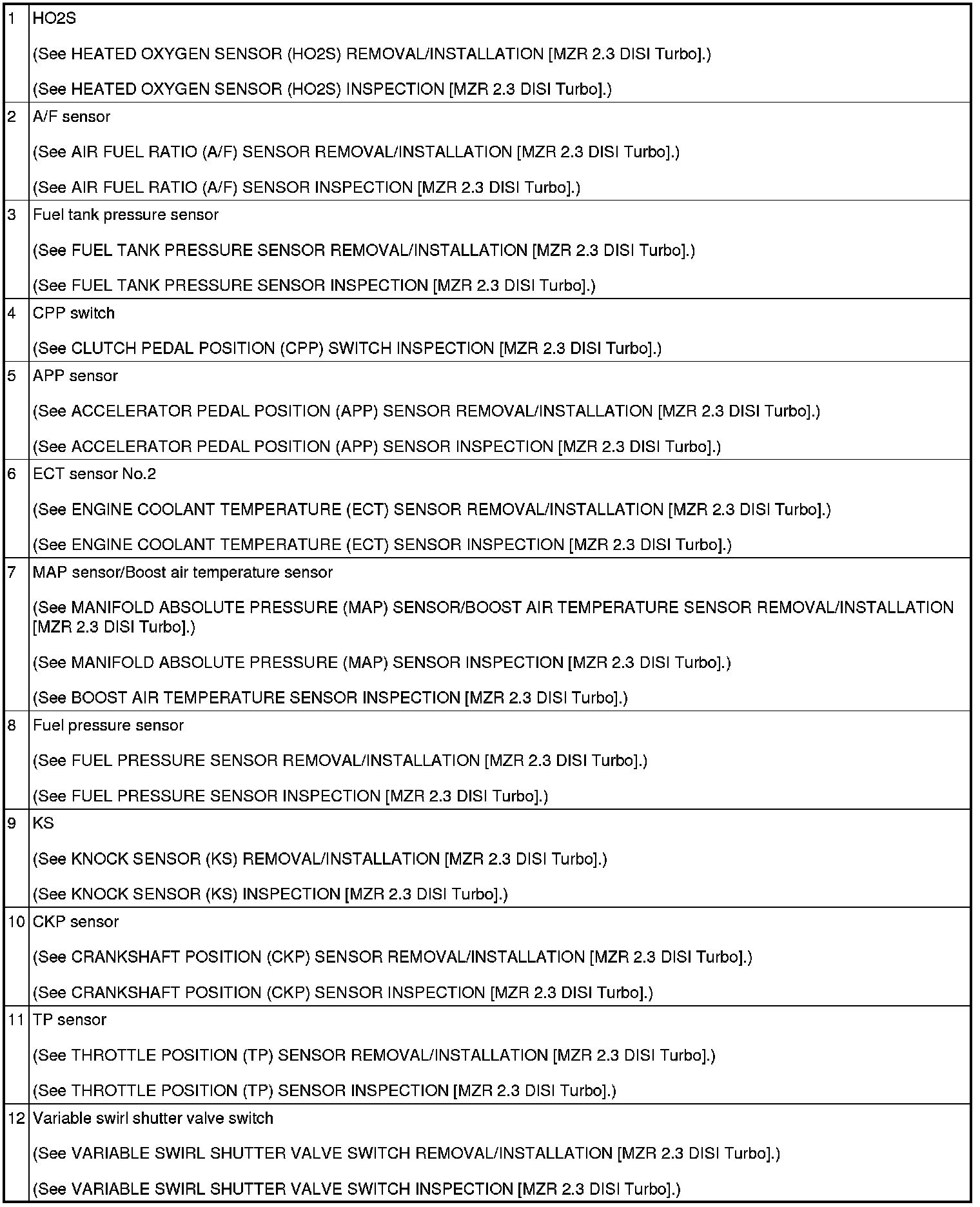 CONTROL SYSTEM LOCATION INDEX [MZR 2.3 DISI Turbo]