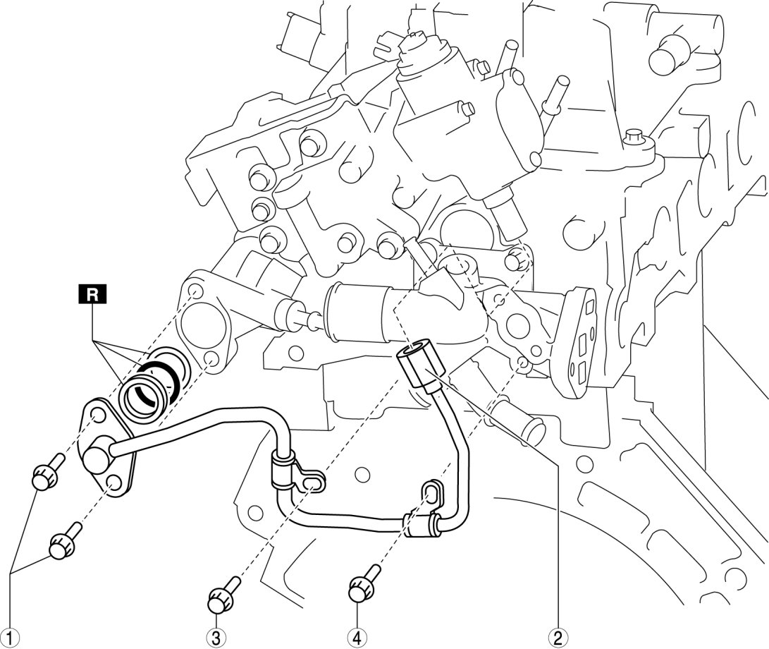 3. Tighten high pressure line pipe installation nut of No.2 shown in the figure.