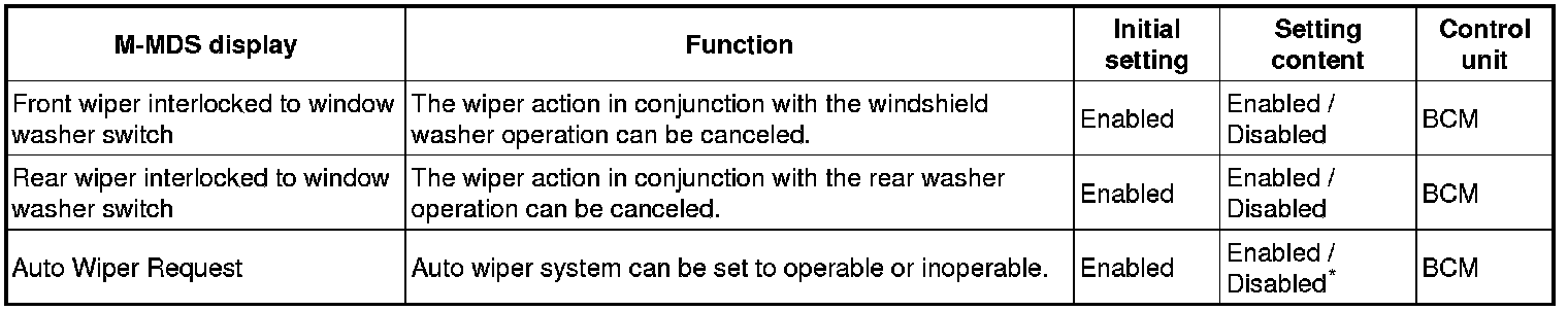 To change to the disable mode, replace the wiper and washer switch (with auto wiper system (AUTO)) with the switch on the vehicle (without auto wiper system (INT).