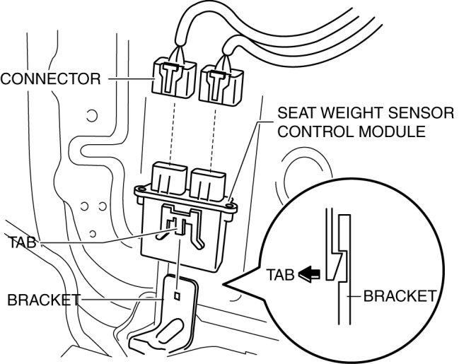 - When the seat weight sensor control module is replaced with a new one, perform the seat weight sensor calibration using the M-MDS. Programming and Relearning