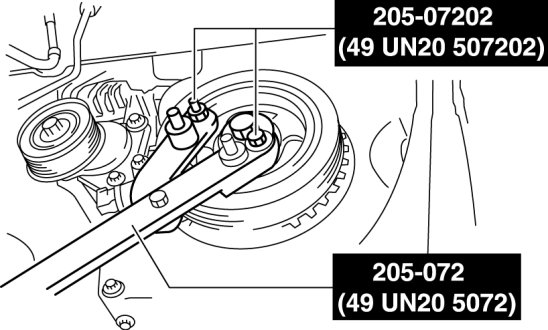 To position the crankshaft pulley, temporarily tighten it and, using a suitable bolt (M6 X 1.0), fix the crankshaft pulley to the engine front cover.