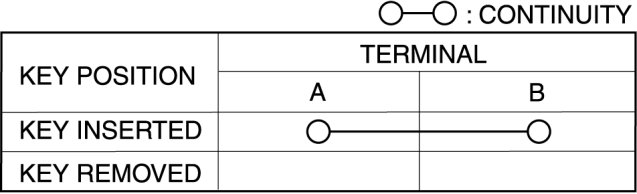 4. Verify that the continuity between the key reminder switch terminals is as indicated in the table.