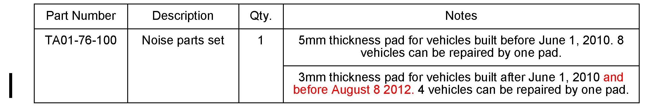 *^ This bulletin supercedes the previous bulletin 09-034/12, issued on 08/22/12, 09-006/11, issued on 02/07/11, and 09-071/09, issued on 11/12/09. The APPLICABLE MODELS(S)/VINS, REPAIR PROCEDURE, PARTS INFORMATION and WARRANTY have been revised.*