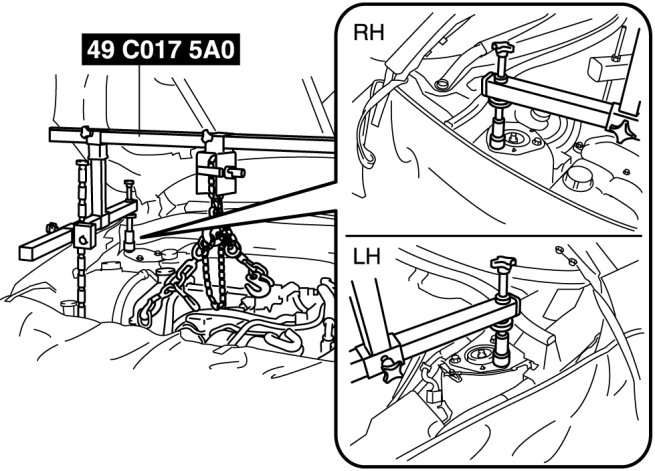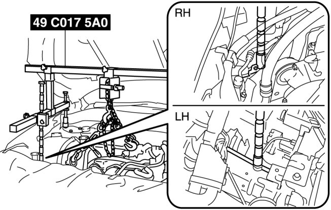 3. Adjust the SST (49 C017 5A0) so that the engine is located at the specified position.