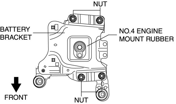 6. Tighten the No.4 engine mount rubber and battery tray bracket installation nuts as shown in the figure.
