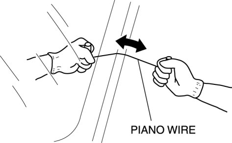 - For the areas of the sealant that are difficult to cut, use the piano wire and follow the procedure under "Reusing Windshield".