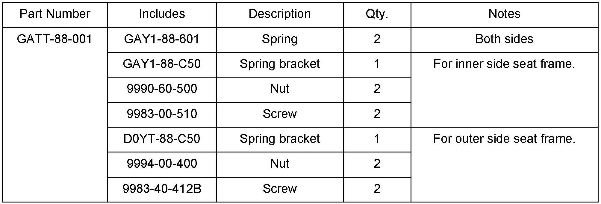 8. Install the new spring bracket and spring to the outer side seat frame the same way as the inner side frame.