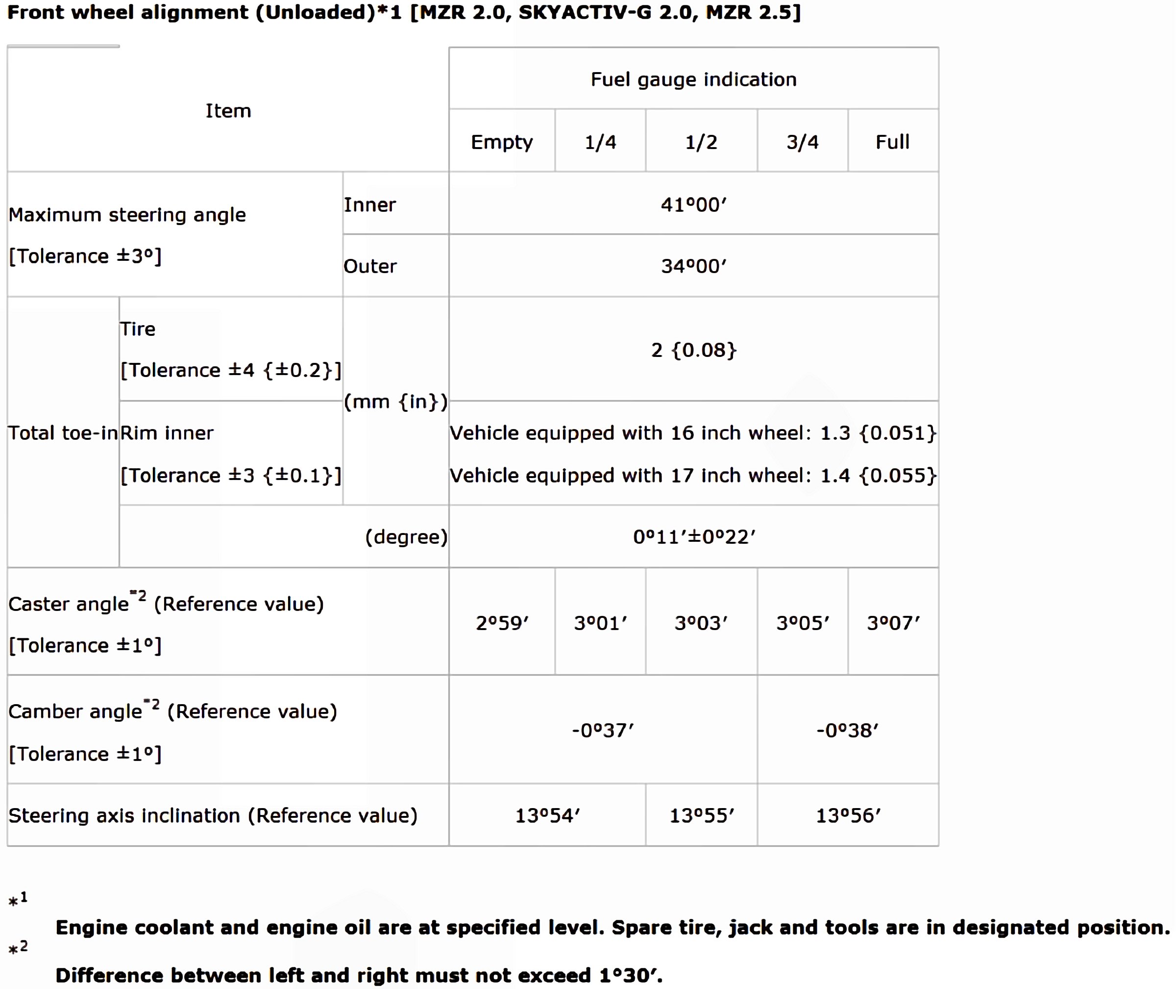 Wheel Alignment Specifications
