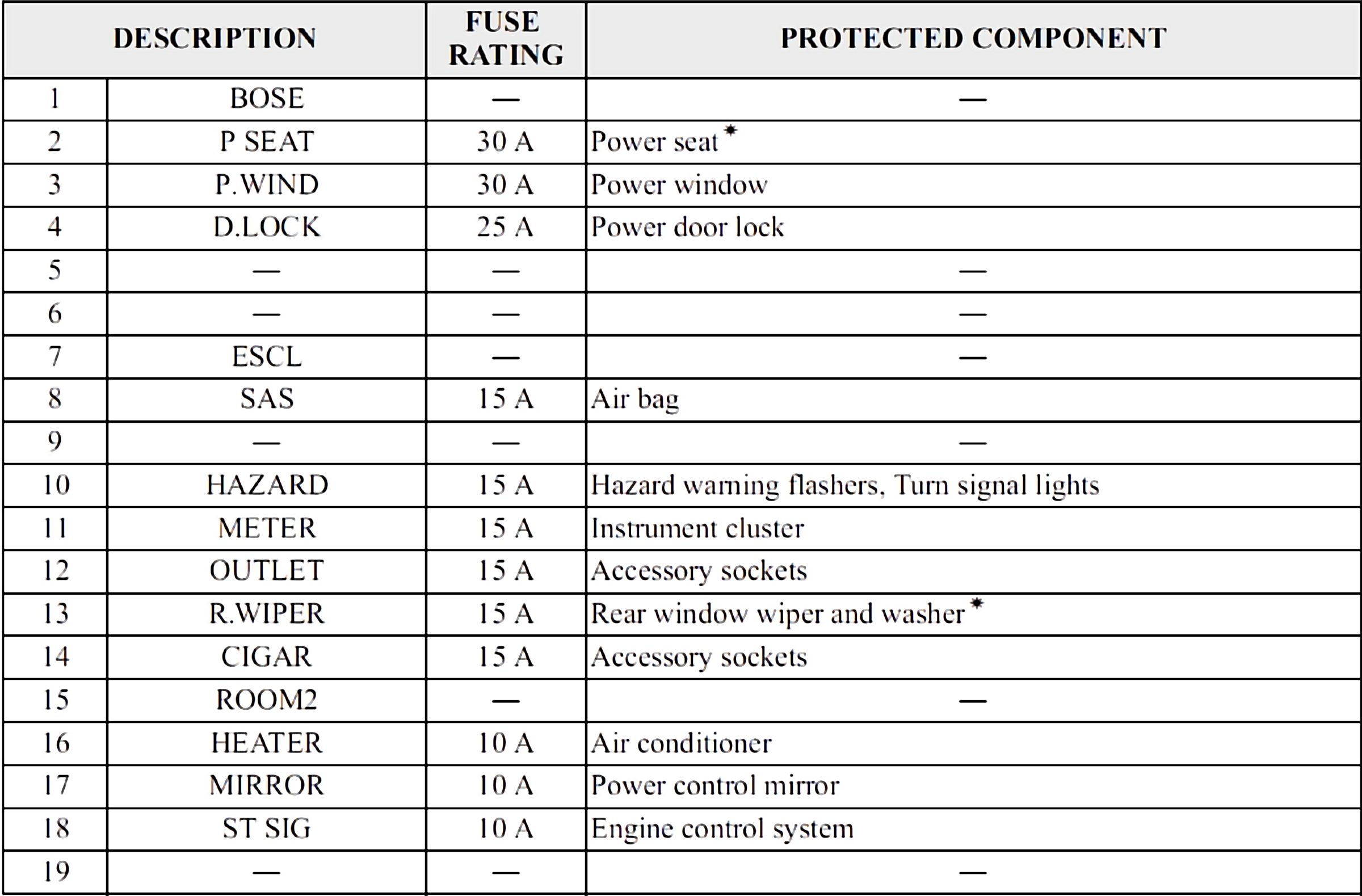 Fuses 1-19: