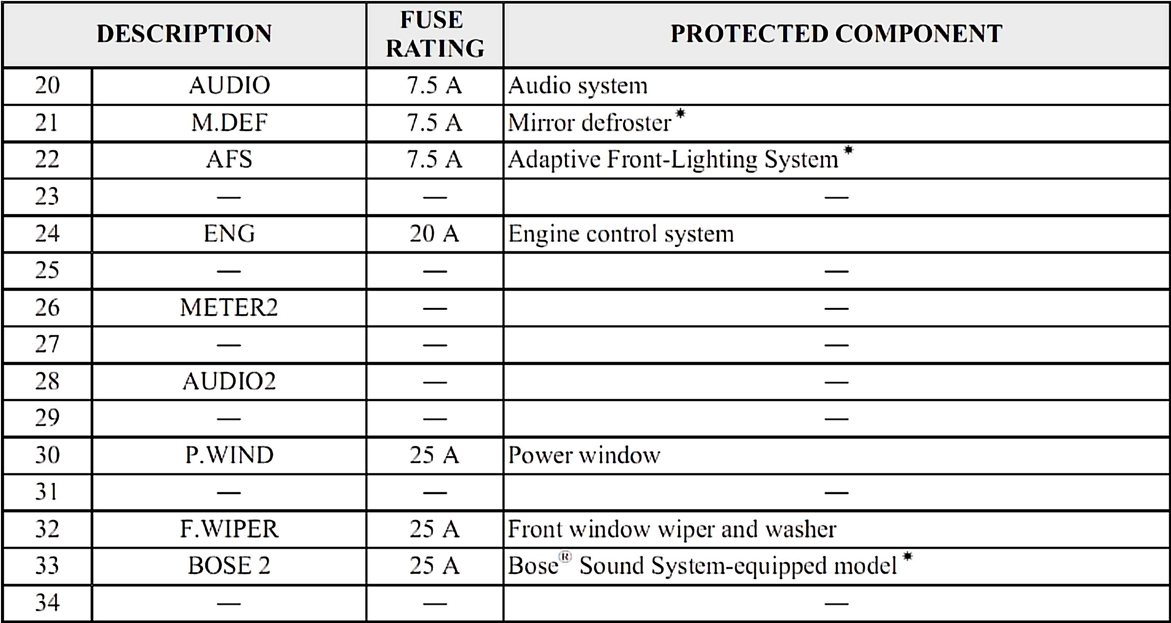 Fuses 20-34: